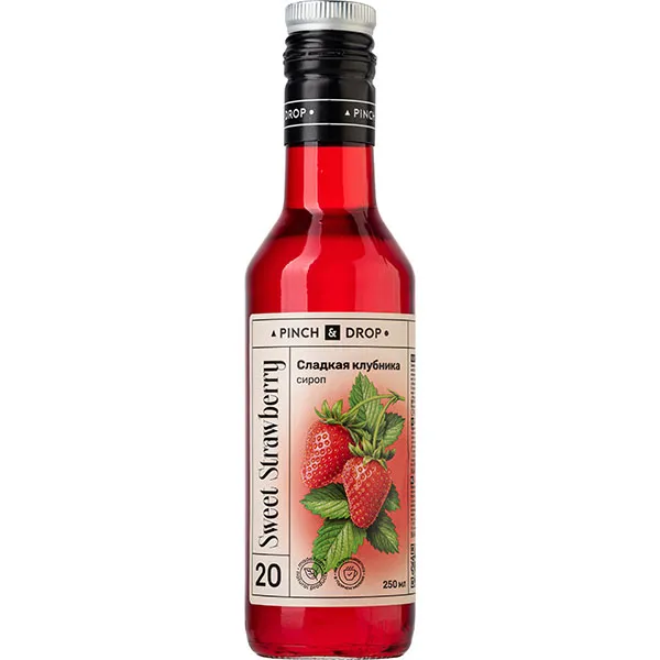 Сироп «Сладкая Клубника» Pinch&Drop уцененный стекло 250мл D=54,H=202мм красный