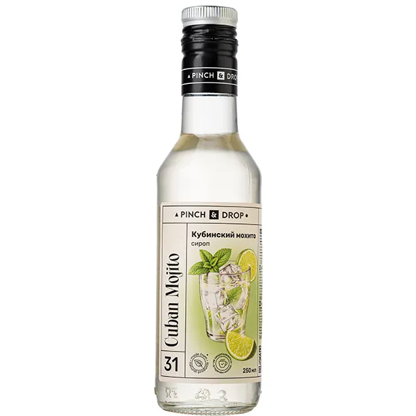 Сироп «Кубинский Мохито» Pinch&Drop уцененный стекло 250мл D=54,H=202мм белый