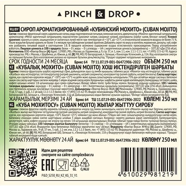 Производитель использует только натуральные компоненты. Производство ведется в соответствии с отечественными стандартами. В итоге клиенты получают великолепный товар с насыщенным вкусом и потрясающим ароматом. Pinch&Drop работает для того, чтобы ваши любимые напитки, десерты и кофе раскрывались новыми вкусами.