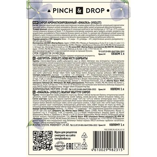 Сироп «Фиалка» Pinch&Drop стекло 1л D=85,H=330мм синий