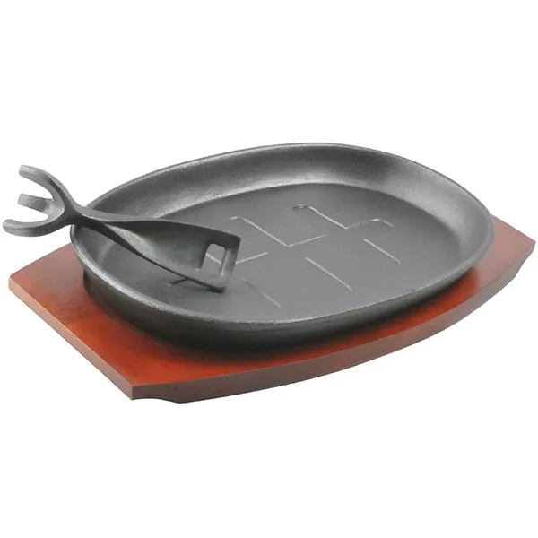 Сковорода для фахитос на подставке чугун,дерево ,H=45,L=320/275,B=190мм черный,древесн. арт. 04020710