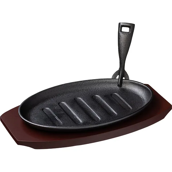 Сковорода для фахитос с подставкой «Эмбер Каст» чугун,дерево ,H=32,L=32/27,B=18см черный
