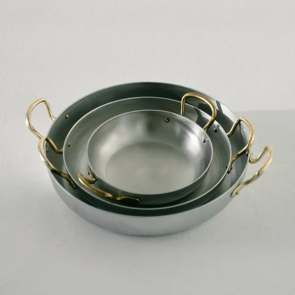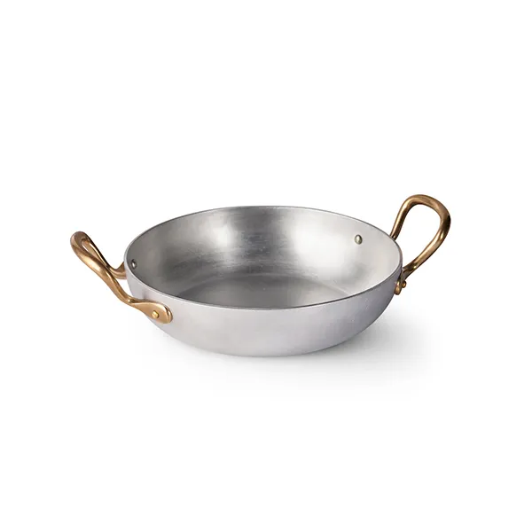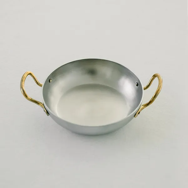 Сковорода для подачи «Арго» с двумя ручками алюмин.,латунь 450мл D=140,H=35мм серебрист.