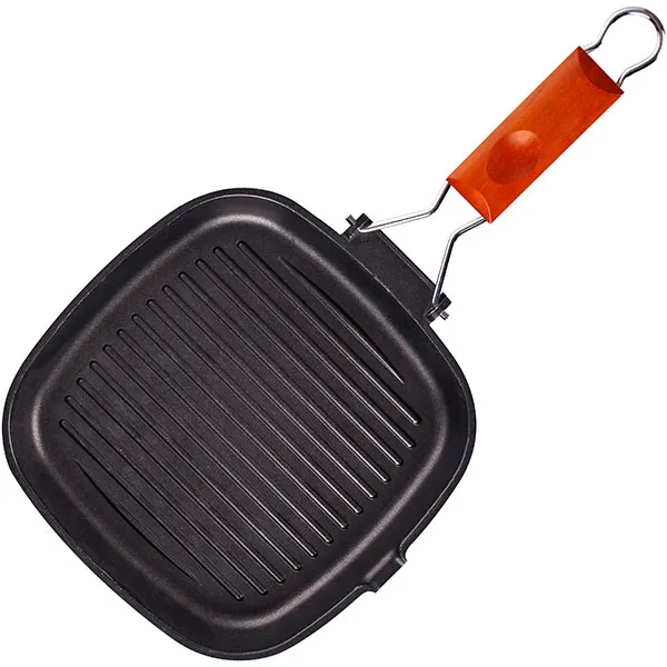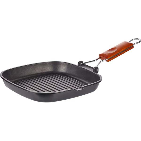 Сковорода-гриль алюмин.,дерево ,H=3,L=25/20,B=25см черный,коричнев.