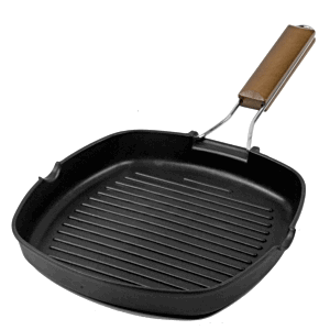 Сковорода-гриль алюмин.,дерево D=320,H=35,L=470/220мм черный,св. дерево