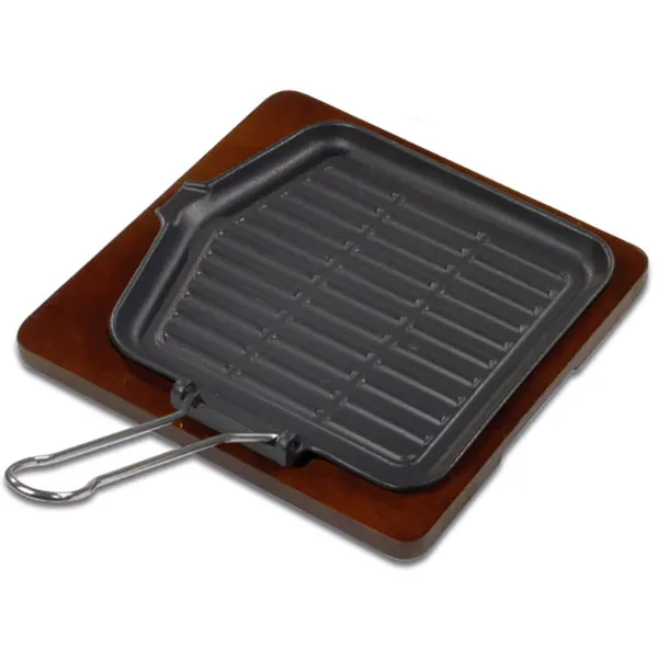 Сковорода-гриль на подставке чугун,дерево ,H=4,L=28/19,B=26см черный,св.корич.