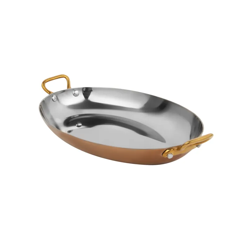 Сковорода овальная с двумя латунными ручками, нержавеющая сталь с медным покрытием, 30х20х4,1 см COS