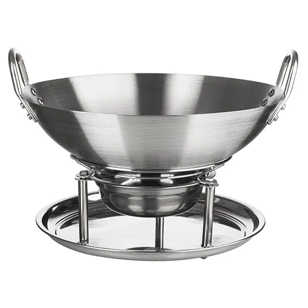 Сковорода «Садж Вок» без крышки с ручками и подставкой сталь нерж. D=340,H=65,L=360мм металлич.