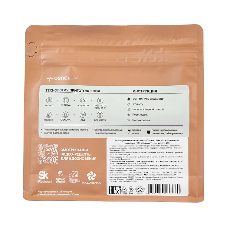 Смесь сухая для приготовления напитков «Апельсиновый пломбир» для раф кофе 500 г картон,пластик ,H=1