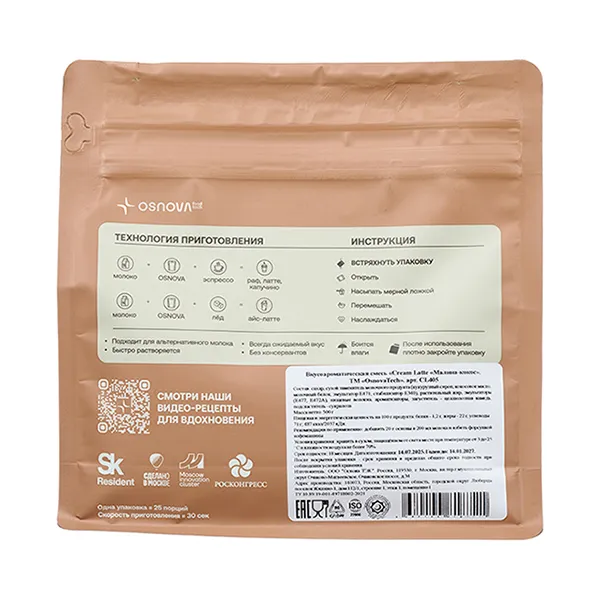 Смесь сухая для приготовления напитков «Малина-Кокос» для раф кофе 500 г картон,пластик ,H=18,L=18,B