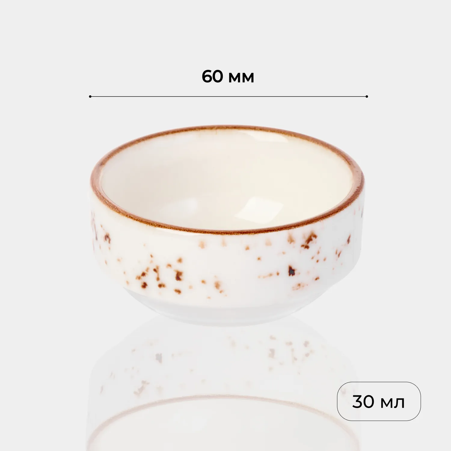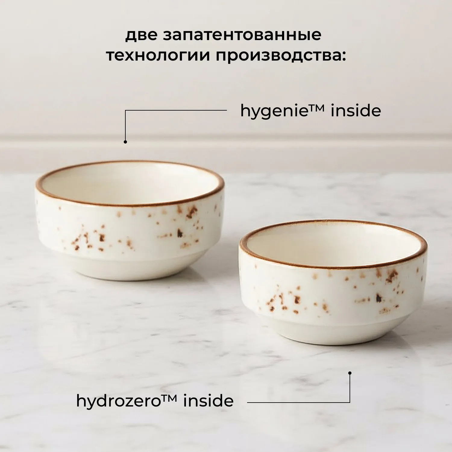 Диаметр – 6 см, объем – 30 мл. Эти параметры оптимальны для порционной подачи соусов и заправок. Соусник выполнен из прочного фарфора с применением передовых технологий. Hydro Zero™ Inside обеспечивает повышенную стойкость к сколам и царапинам, сохраняя безупречный вид даже при контакте с агрессивными ингредиентами. HyGenie™ Inside создает антибактериальную защиту поверхности, обеспечивая гигиеничность изделия.