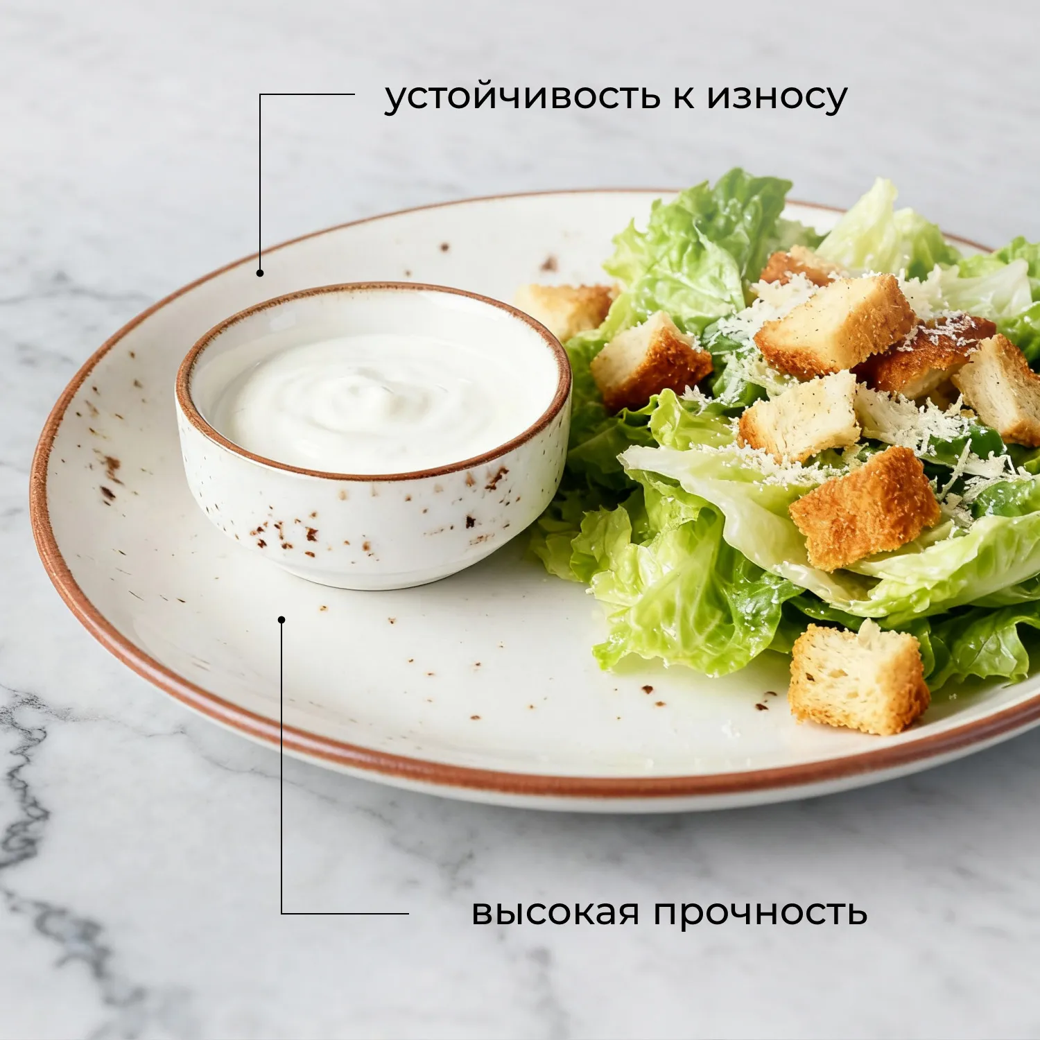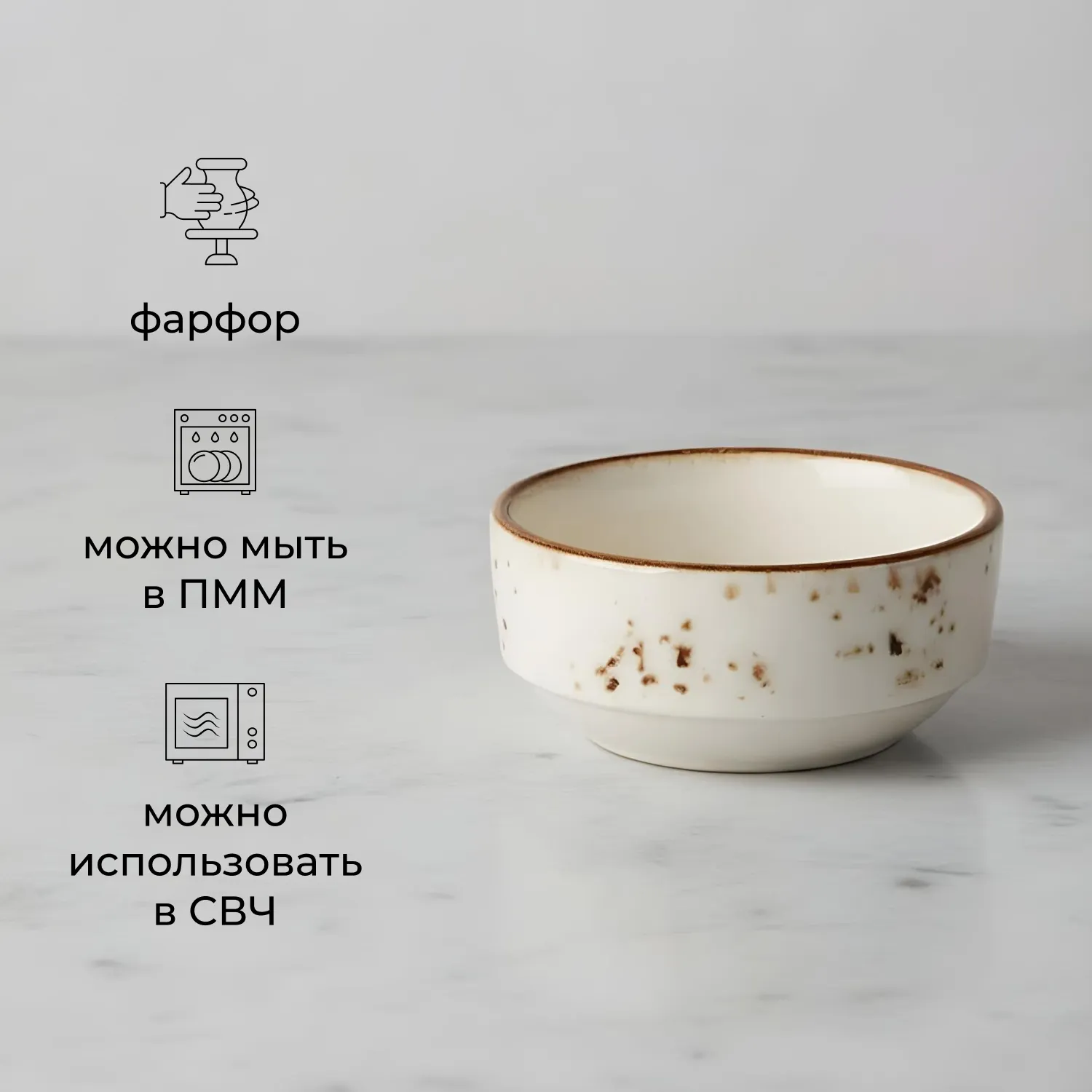 Соусник «Париж» бренда Kunstwerk отличается благородным белым цветом с коричневыми вкраплениями и изящным кантом по краю. Такое сочетание делает его выразительным акцентом в сервизе.