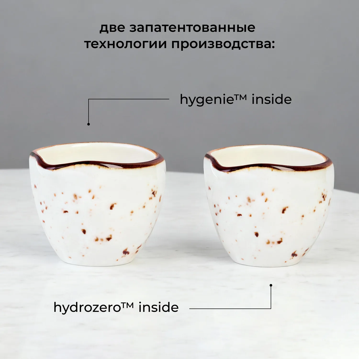 Размеры: диаметр – 6 см, высота – 5 см. Объем – 60 мл. Фарфор из коллекции Paris создается с применением технологий Hydro Zero™ Inside и HyGenie™ Inside. Первая обеспечивает материалу повышенную плотность и устойчивость к сколам. Вторая наделяет поверхность антибактериальными свойствами, обеспечивая чистоту в профессиональной среде.