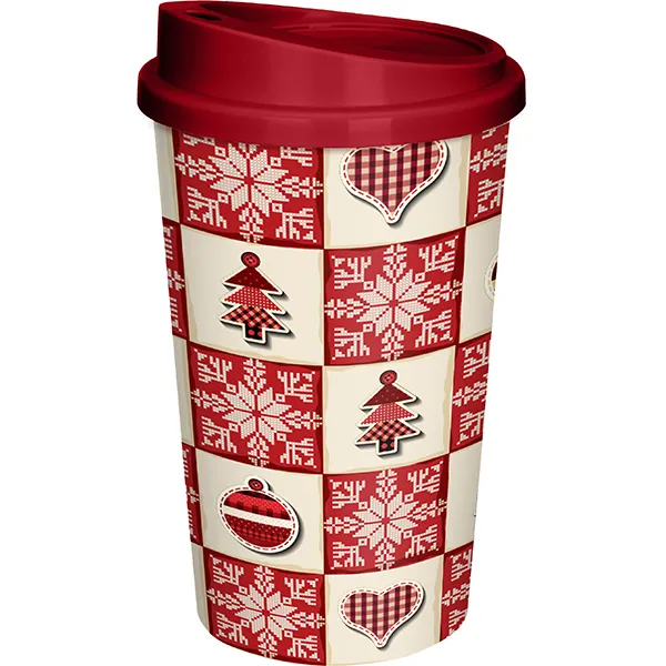 Стакан для горячих напитков «Новый год» с крышкой полипроп. 400мл красный