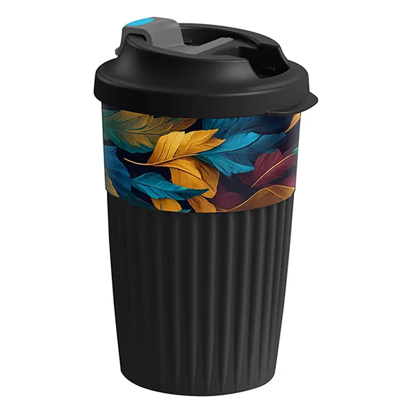 Стакан для горячих напитков «Листья» с клапаном полипроп. 450мл D=92,H=147мм черный