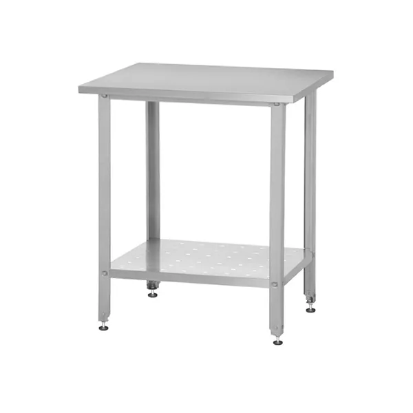 Используется для разделки, подготовки ингредиентов, временного хранения посуды и инвентаря. Нижняя полка (перфорированная) дает возможность хранить инвентарь, не нарушая санитарные требования.