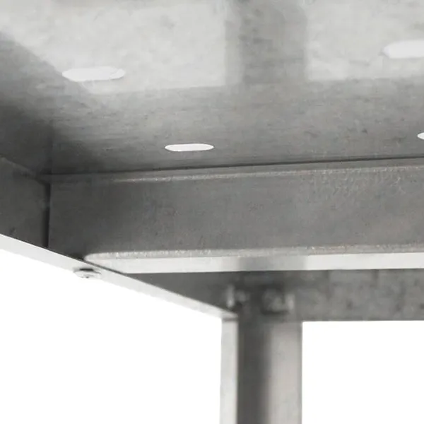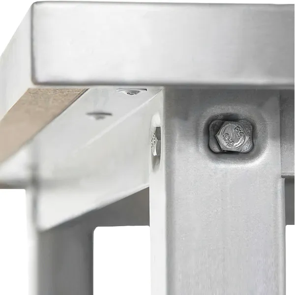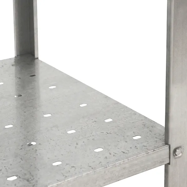 Нижняя полка, выполненная из оцинкованной стали толщиной 0,8 мм, имеет перфорированную конструкцию, которая способствует улучшенной вентиляции и позволяет удобно размещать оборудование или инвентарь. Каркас стола из оцинкованной стали толщиной 1,5 мм с ножками в форме уголка обеспечивает стабильность конструкции. Стол можно трансформировать благодаря регулируемым опорам. Все крепежи в комплекте.
