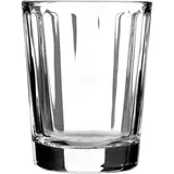 Стопка из прозрачного стекла имеет простой орнамент. От плотного дна добавлены ровные линии, которые добавляют небольшое сужение. Оригинальная форма конуса придает очарование товару. Качественный материал красиво играет при свете ламп.
