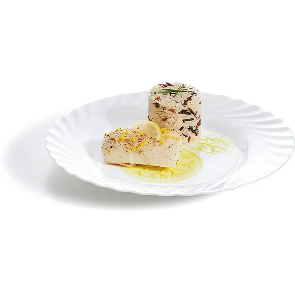Тарелка «Трианон» от Arcoroc — это обеденная тарелка, которая подойдет для оформления места для каждого гостя. Но за счет универсальной формы и среднего диаметра ее часто используют в качестве сервировочного блюда. На ней красиво можно разложить салаты, закуски, снеки.