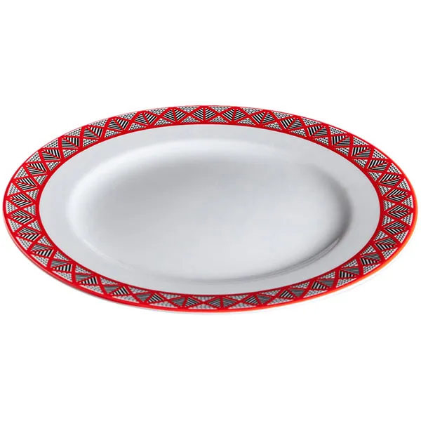 Тарелка «Мезень» Классик Елочка плоская фарфор D=250,H=22мм белый,красный