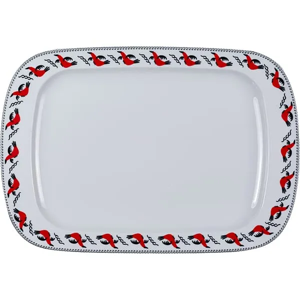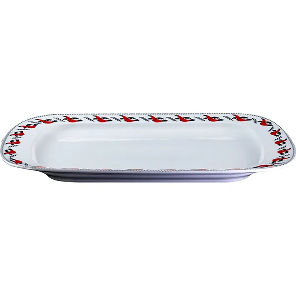 Тарелка «Мезень» Принц Гуси прямоугольная фарфор ,H=27,L=360,B=250мм белый,красный