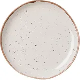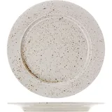Российский производитель «Борисовская керамика» предлагает фарфоровую тарелку «Пунто Бьянка» для вторых блюд. Тарелка выполнена в классической круглой форме и нейтральной цветовой гамме. Белая основа усеяна темными вкраплениями, а края украшены золотистой окантовкой. Такой уникальный декор привносит в сервировку оригинальности.