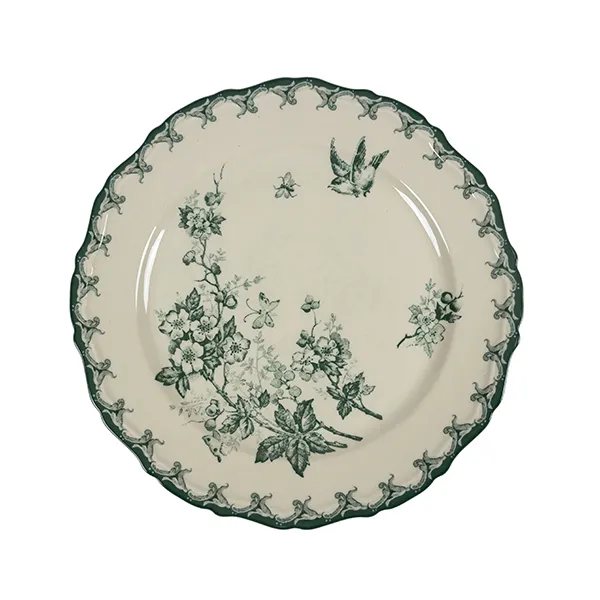 Тарелка «Боярышник» плоская керамика D=185,H=23мм белый,зелен.