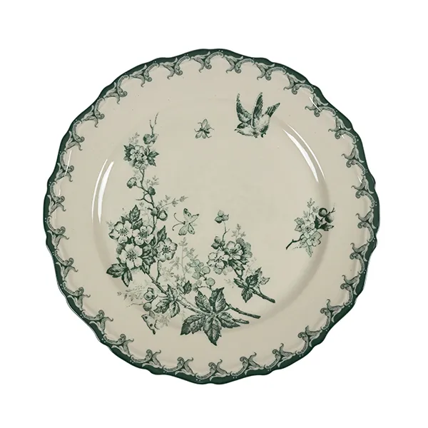 Тарелка «Боярышник» плоская керамика D=225,H=20мм белый,зелен.