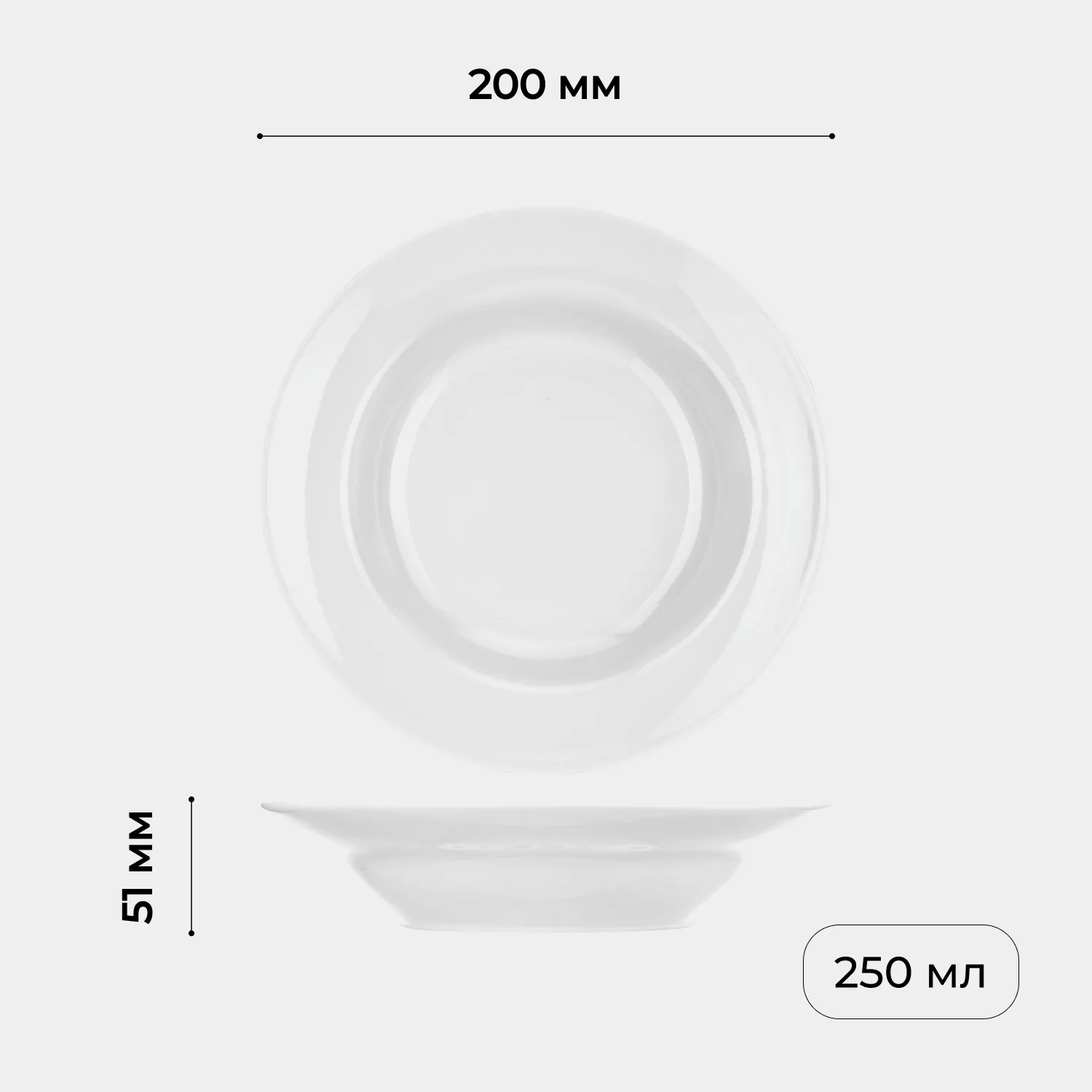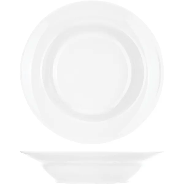 Тарелка глубокая «Идиллия» из белого фарфора объемом 250 мл — это стандартная посуда для первых блюд. Качественный материал лаконичного цвета придает изделию элегантность. Товар вместительный, его диаметр 200 мм, а высота посуды 5,1 см.
