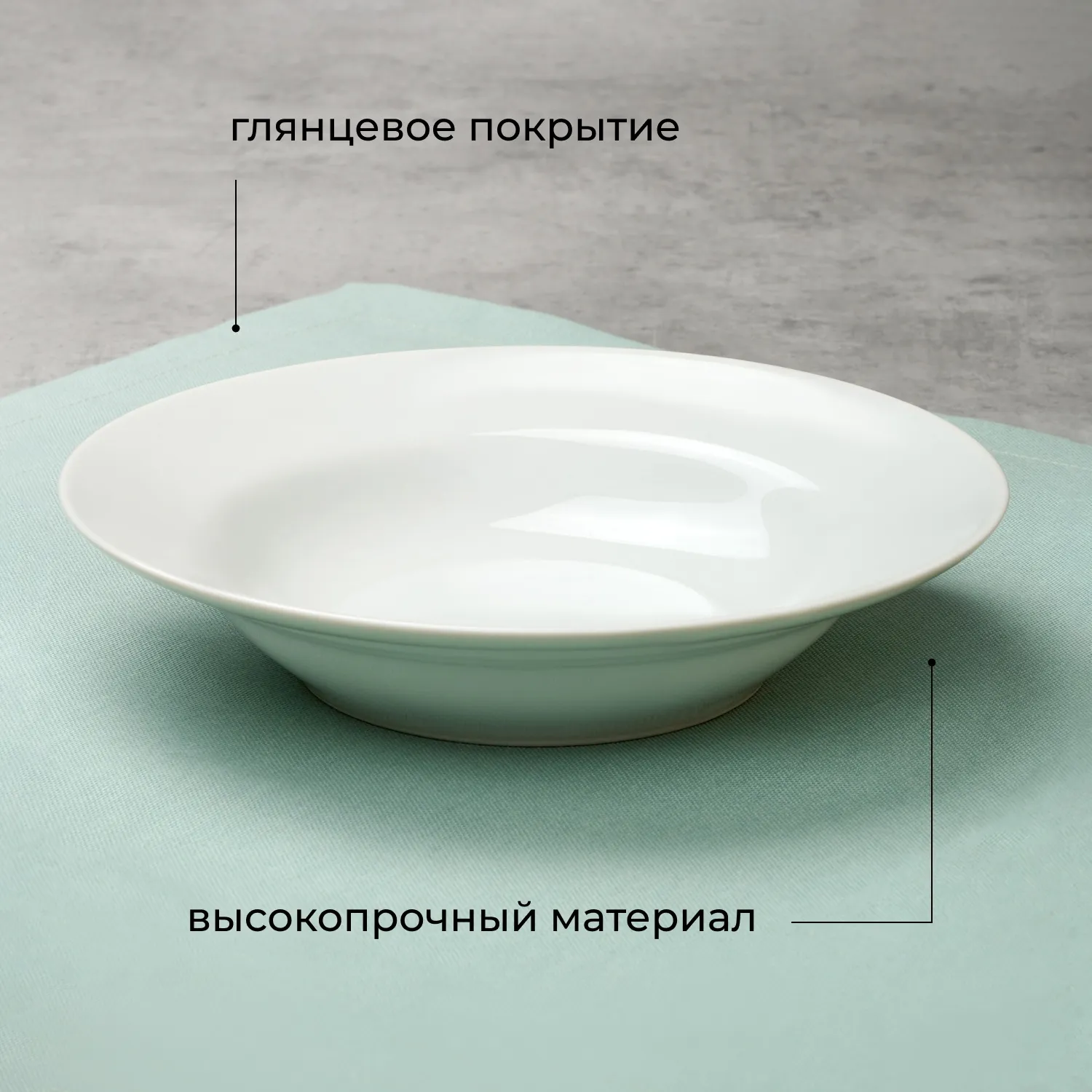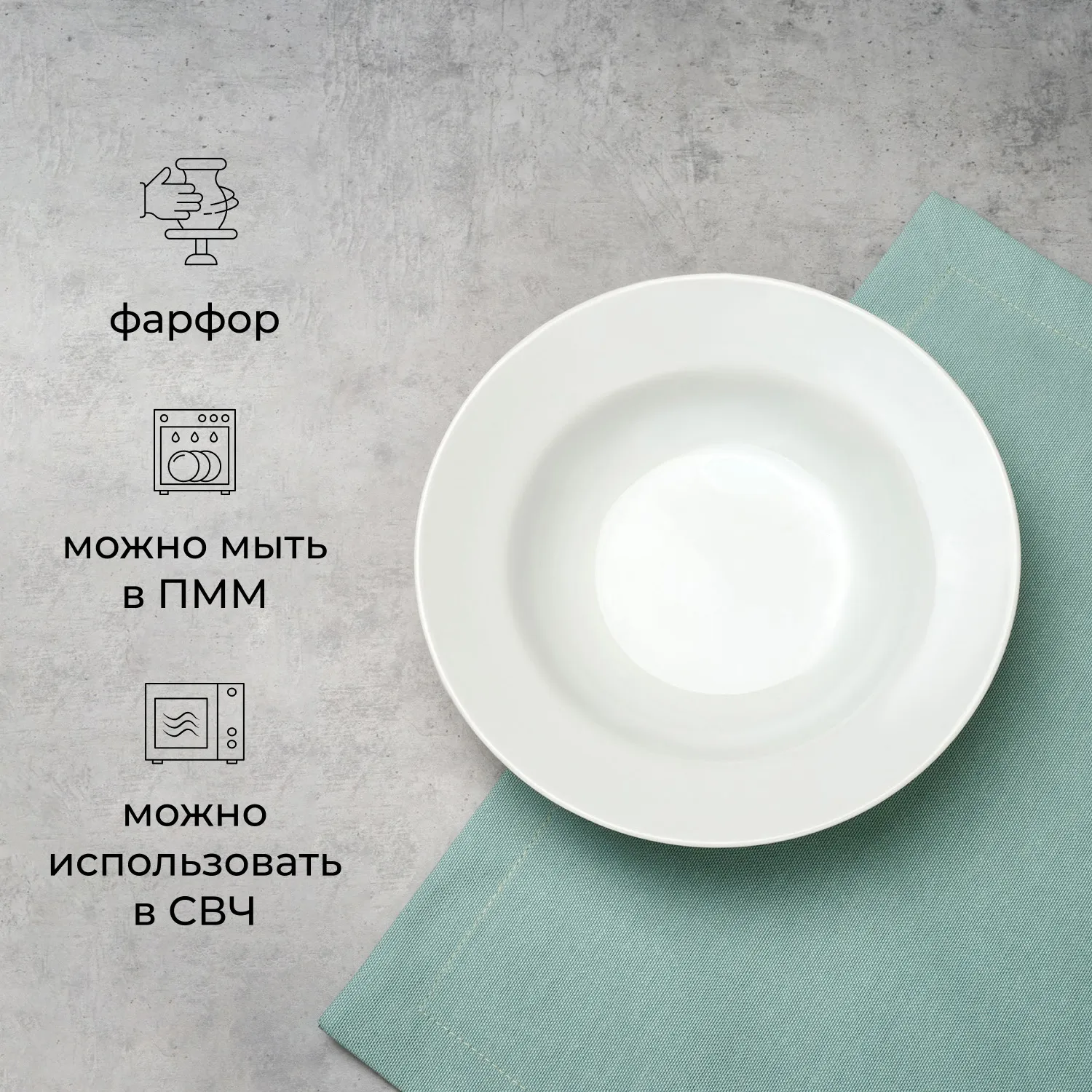Тарелка «Иддилия» от Добрушского фарфорового завода — посуда для первых блюд. В ней удобно подавать супы и бульоны, овощные рагу с подливами, а также некоторые салаты.