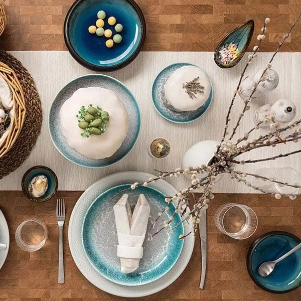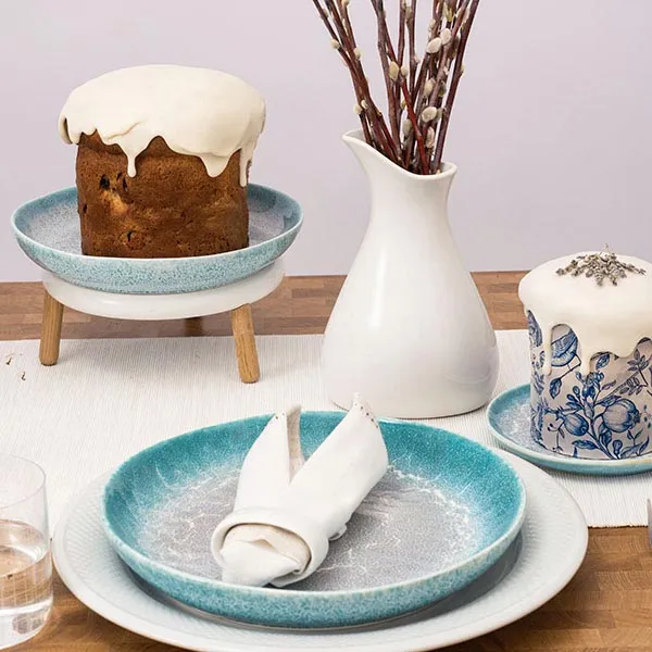 Тарелка глубокая «Нептун» фарфор 0,5л D=22см бирюз.,белый