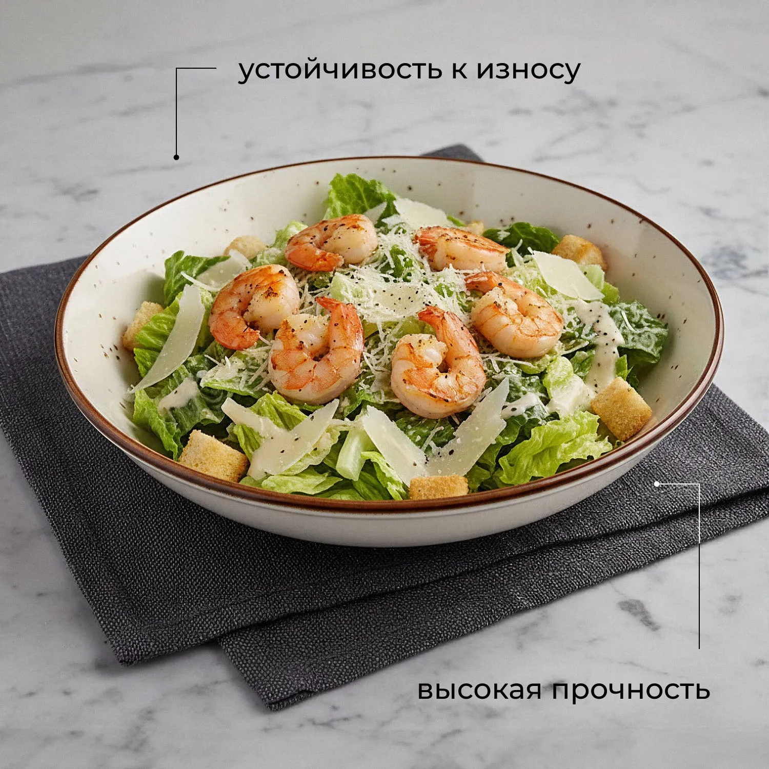 В ресторане – идеальна для порционной подачи салатов и горячего: супов, пасты, рагу, ризотто. В баре или кафе – для демонстрации шеф-позиций. Поверхность устойчива к сколам и перепадам температур, что делает изделие надежным элементом профессионального инвентаря.
