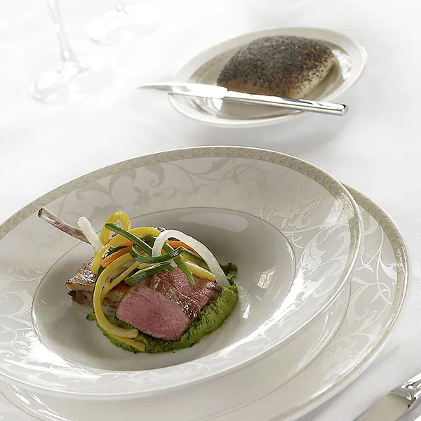 Тарелка глубокая «Антуанетт» фарфор 380мл D=24,H=4см белый,олив.