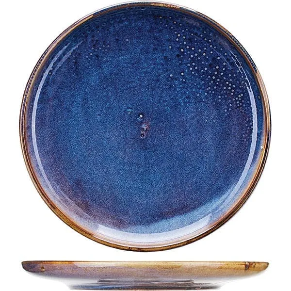 Сверху посуда покрыта глянцевой глазурью, которая не царапается от столовых приборов и не тускнеет со временем. Тарелка отличается уникальным дизайном – глубокий синий цвет и небольшие вкрапления делают её неповторимой. Посуду можно мыть в посудомоечной машине и использовать в микроволновой печи. Производитель: Китай. Диаметр – 26 см, высота – 3 см.