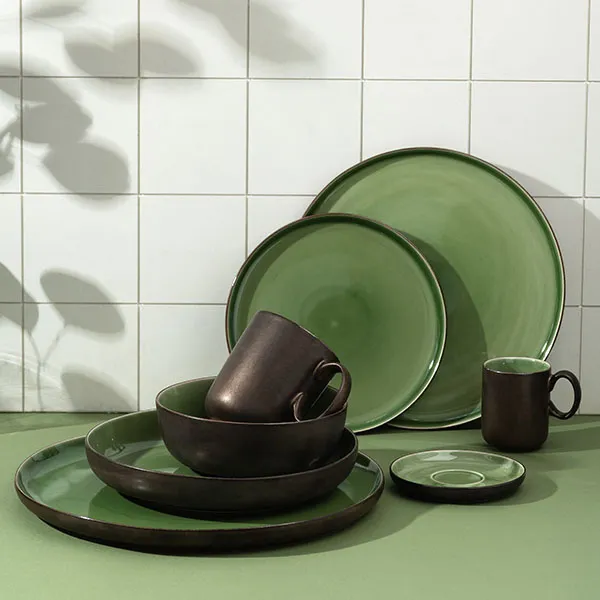 Тарелка «Сейдж» фарфор D=21см зелен.,бронз.