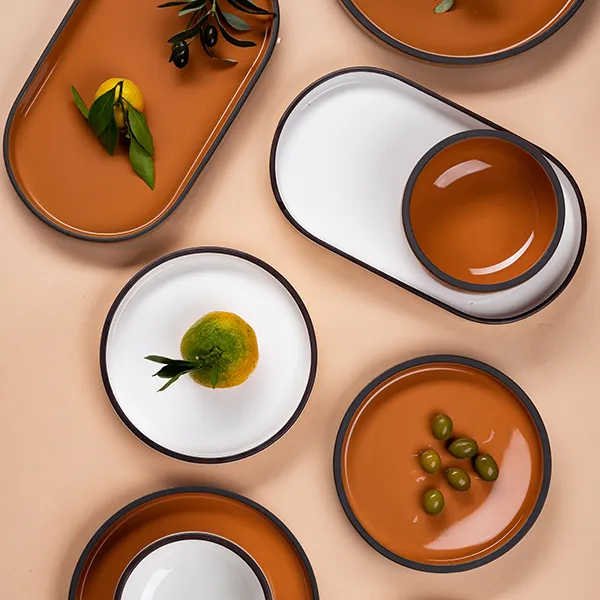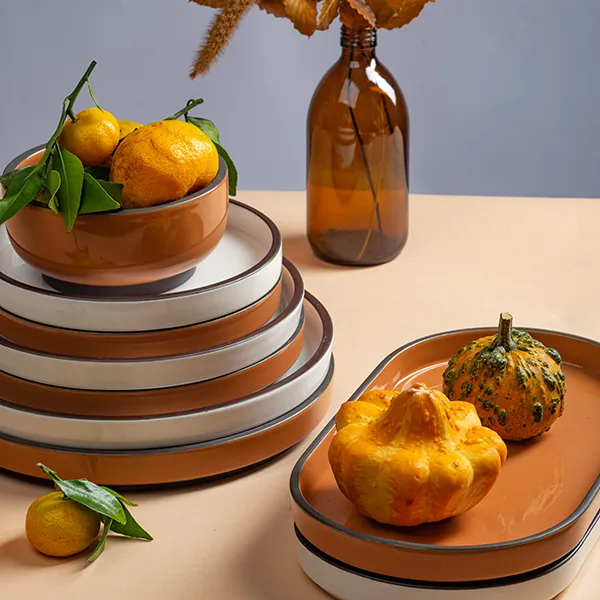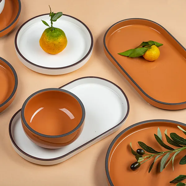 Блюдо для подачи «Блисс» с бортом фарфор ,H=27,L=304,B=174мм оранжев.
