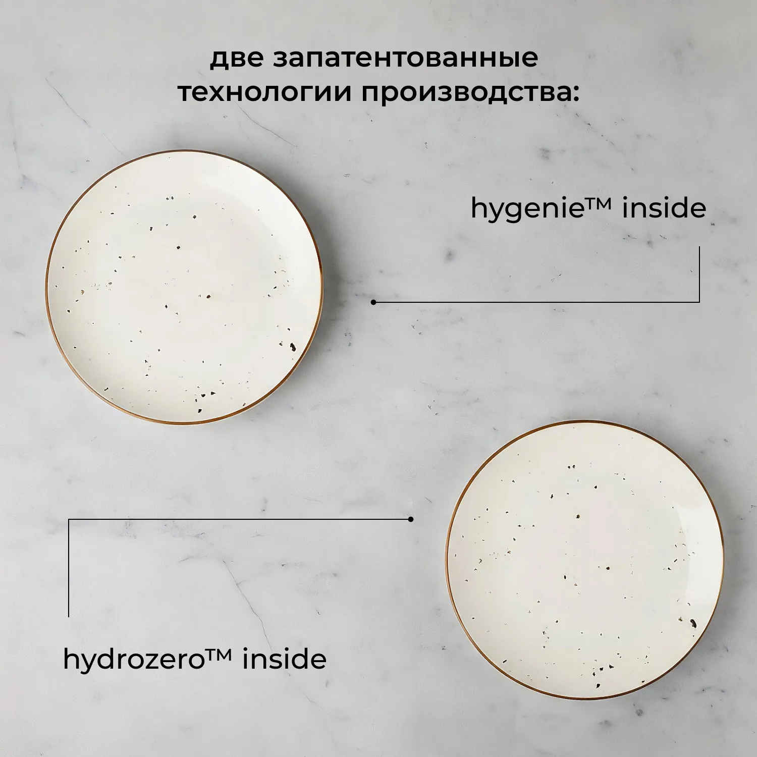 Фарфор коллекции создан с применением технологий Hydro Zero™ Inside и HyGenie™ Inside. Первая обеспечивает повышенную устойчивость к механическим повреждениям, сохраняя поверхность гладкой и целой даже при активной эксплуатации. Вторая гарантирует антимикробную защиту, соответствующую строгим стандартам гигиены в профессиональной среде.