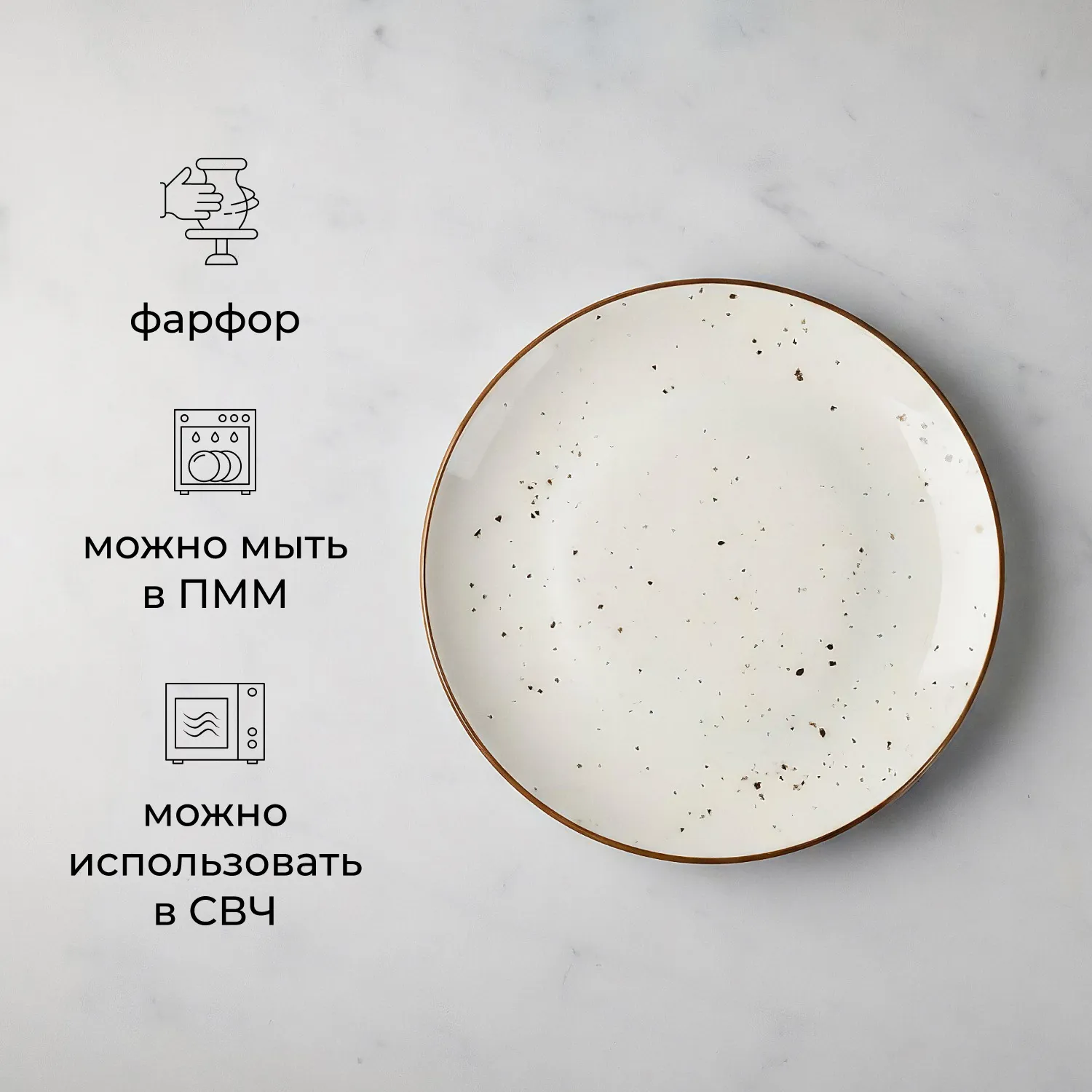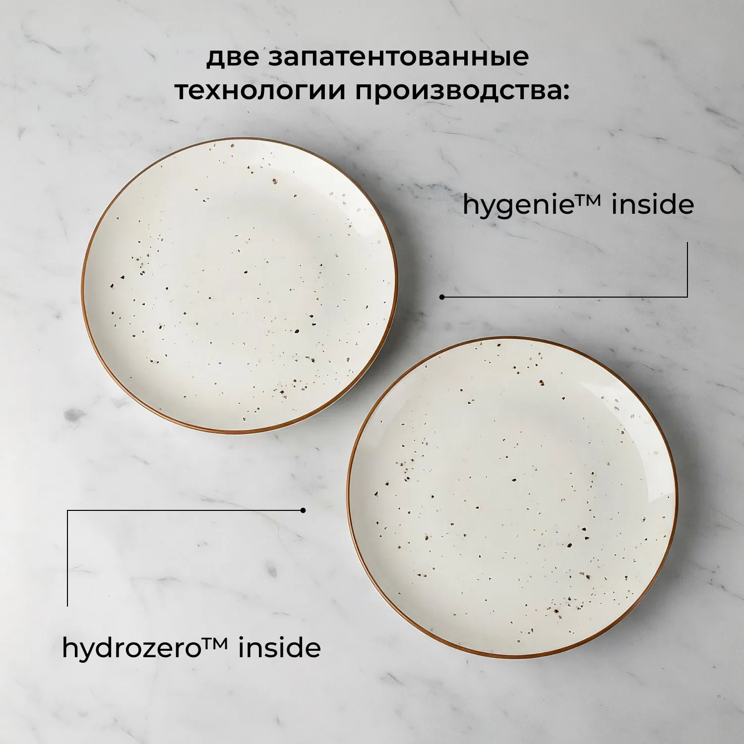 Привлекает внимание глянцевой поверхностью и приятным сливочным оттенком белого. Поверхность украшена мягкими коричневыми вкраплениями, что создает ощущение уникальности каждого изделия. Технология Hydro Zero™ Inside обеспечивает фарфору повышенную стойкость к сколам, а HyGenie™ Inside наделяет антибактериальными свойствами, упрощая поддержание гигиены.