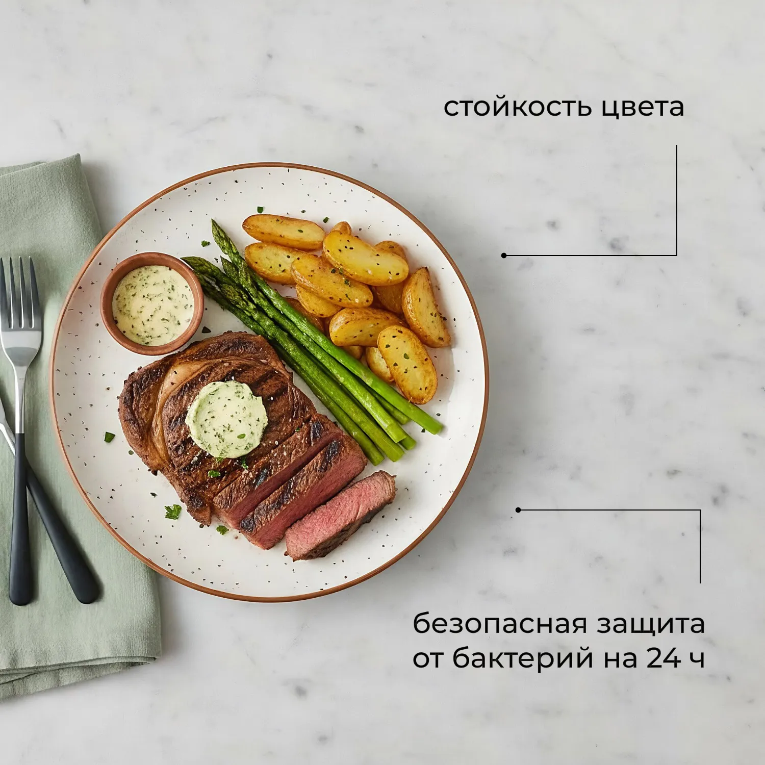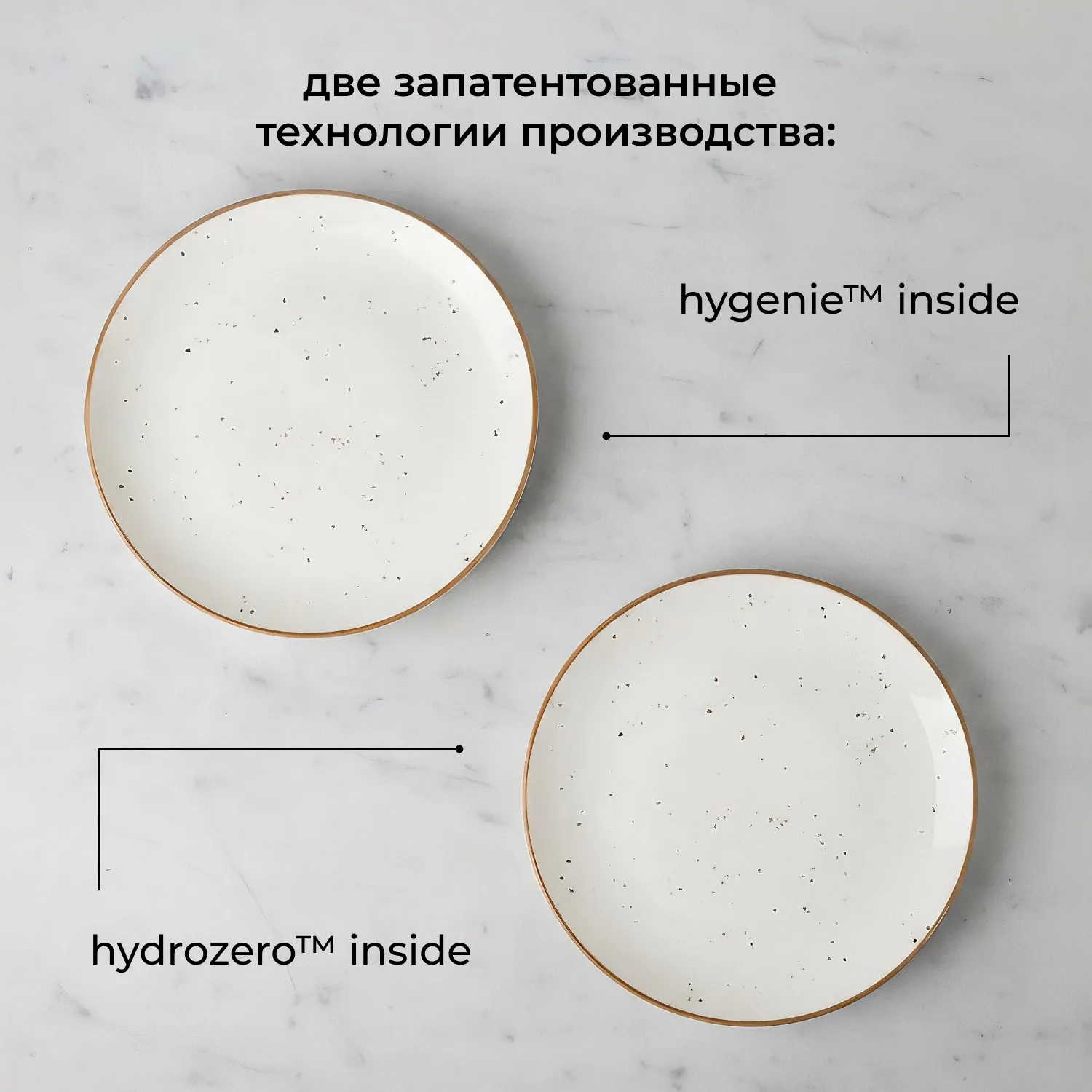 Изготовлена из прочного фарфора и подходит для эксплуатации в HoReCa. Примененная технология Hydro Zero™ Inside позволяет повысить устойчивость материала к сколам и перепадам температур и сохранить первозданный вид изделия даже при активном использовании. Также при производстве применена антибактериальная технология HyGenie™ Inside, гарантирующая соблюдение полной гигиены в заведениях.