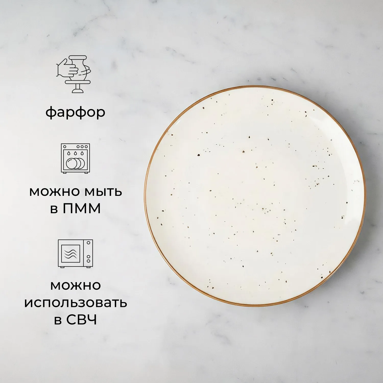 Круглая тарелка «Париж» от бренда Kunstwerk – воплощение профессиональной эстетики и лаконичного дизайна. Диаметр 30 см делает ее подходящей для подачи основных блюд и гастрономических композиций. Сливочно-белый фон с деликатными коричневыми вкраплениями придает изделию теплоту и подчеркивает изысканность сервировки.