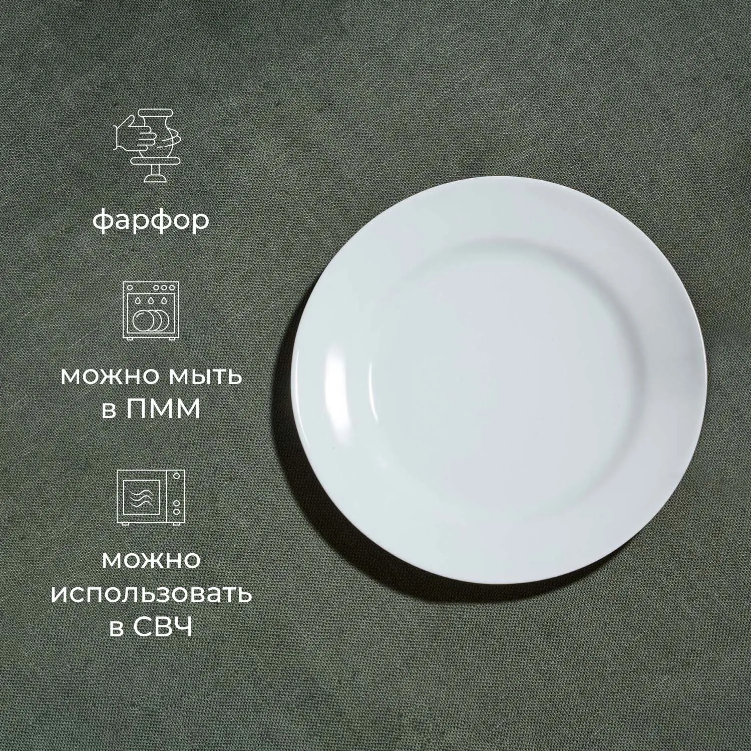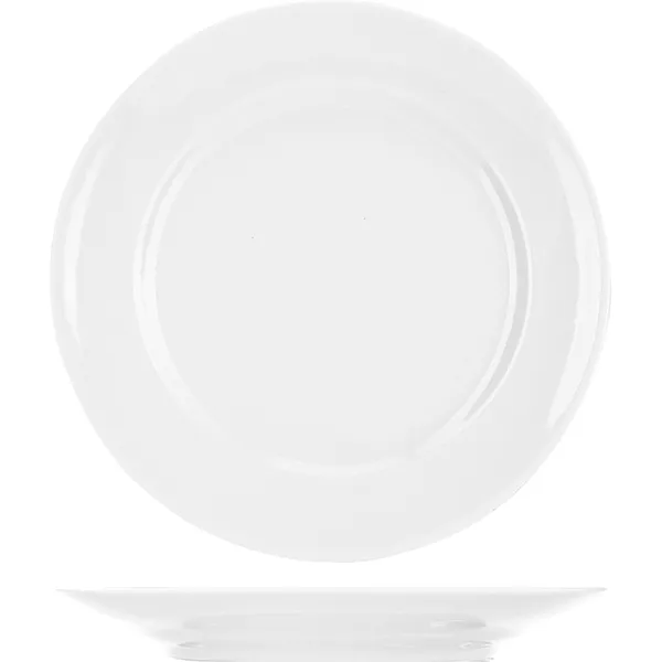 Товар производят из фарфора. Материал качественный и смотрится стильно благодаря элегантному глянцевому блеску. Цвет лаконичный белый, что добавляет фарфоровой тарелке универсальность. Она отлично смотрится в сочетании с любыми классическими сервизами в белом или других оттенках.