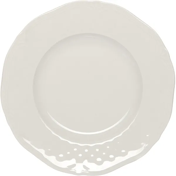 «Афродита» – элегантная мелкая тарелка из серии Afrodyta бренда Lubiana с утонченным дизайном. Белый цвет, скромный декор на поверхности и волнистые края подчеркивают эстетику подачи.