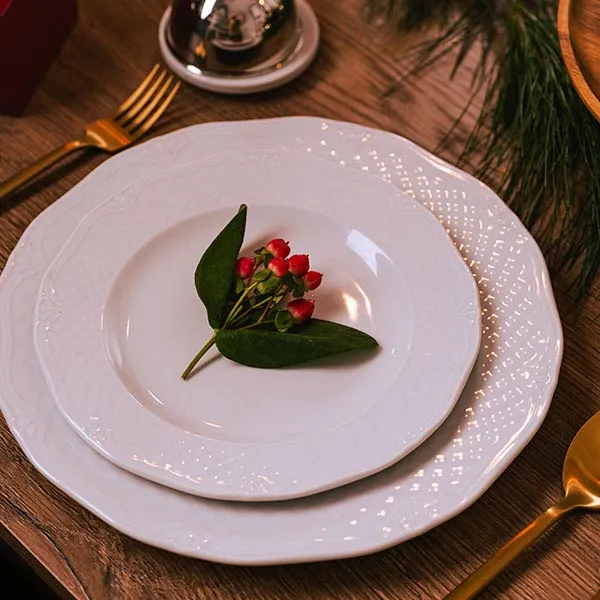 Белые однотонные фарфоровые тарелки украсят любую сервировку стола и сделают ее более праздничной и нарядной. Тарелка подойдет для подачи мяса, рыбы, вторых блюд, десертов, для подачи сырной и мясной нарезки, овощей и фруктов. Диаметр круглой тарелки позволяет делать из нее подложку под тарелку меньшего диаметра. Ненавязчивый ажурный ободок тарелки придает посуде элегантный стиль. Посуду можно использовать при домашней сервировки, оформление деловых и дружеских встреч, свадебных торжеств и фуршетов.