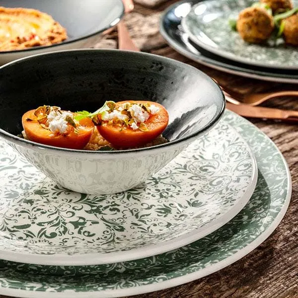 Тарелка «Инк» мелкая фарфор D=25,H=2см зелен.,белый