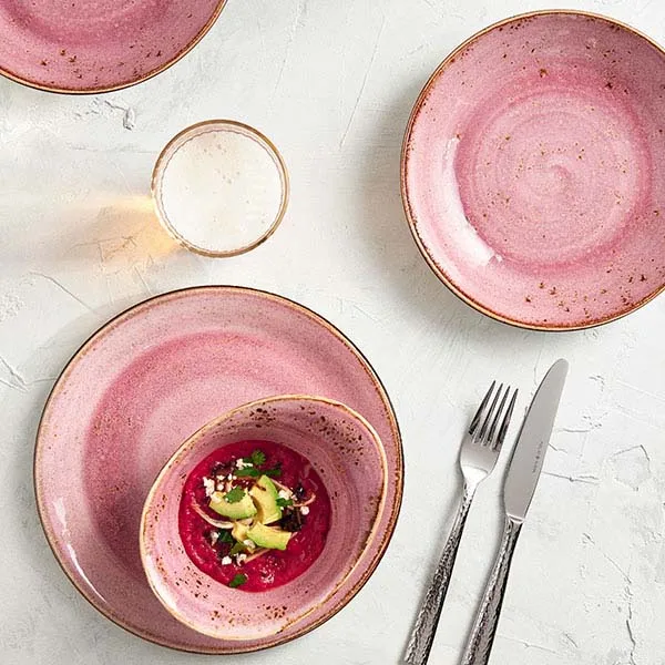 Тарелка «Крафт Распберри» мелкая фарфор D=25,H=3см розов.,коричнев.