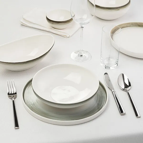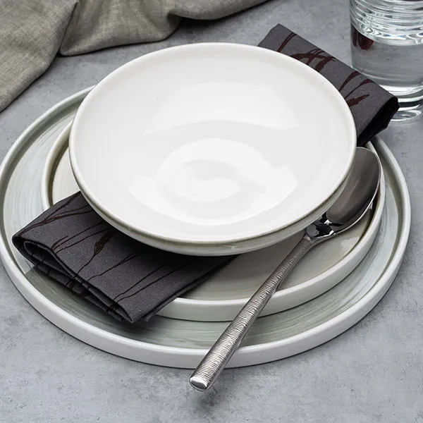 Тарелка «Айсио» с высоким бортом фарфор D=279,H=17мм белый,серый