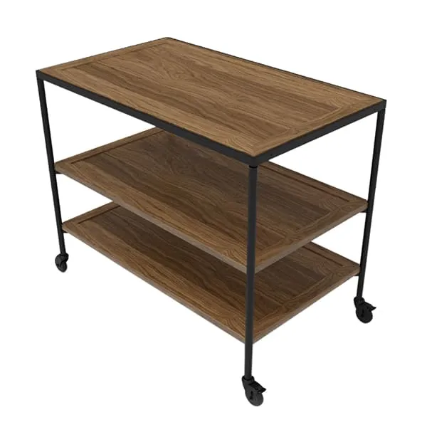 Тележка сервировочная орех,сталь нерж. ,H=88,L=110,B=65см тем.дерево,черный