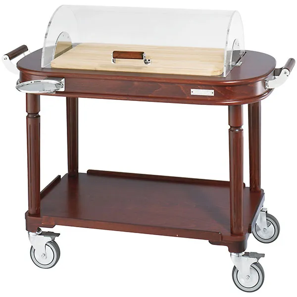 Тележка сервировочная 2 яруса для сыра с крышкой посеребренная дерево,сталь нерж. ,H=94,L=122,B=62см