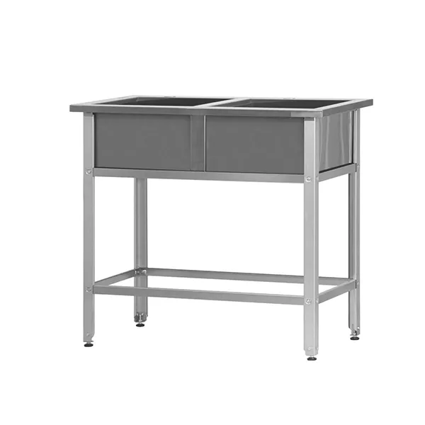 Ванна моечная ВМСр-500/2 серии Retail представляет собой функциональный элемент для профессиональных кухонь, выполненный из нержавеющей стали AISI 430 толщиной 0,8 мм. Имеет две чаши (размер каждой чаши составляет 400x400x250 мм) и два отверстия для смесителей. Ребро жесткости на днище обеспечивает дополнительную прочность. Профиль ножек выполнен в виде уголка. Каркас, изготовленный из оцинкованной стали толщиной 1,5 мм, обеспечивает прочность конструкции. Ванна включает регулируемые опоры, что позволяет адаптировать высоту в зависимости от потребностей пользователя.